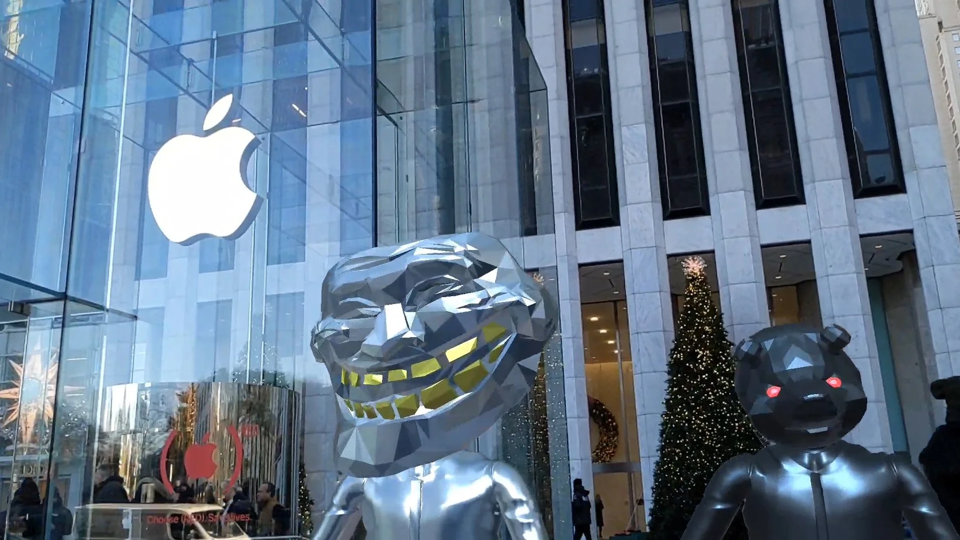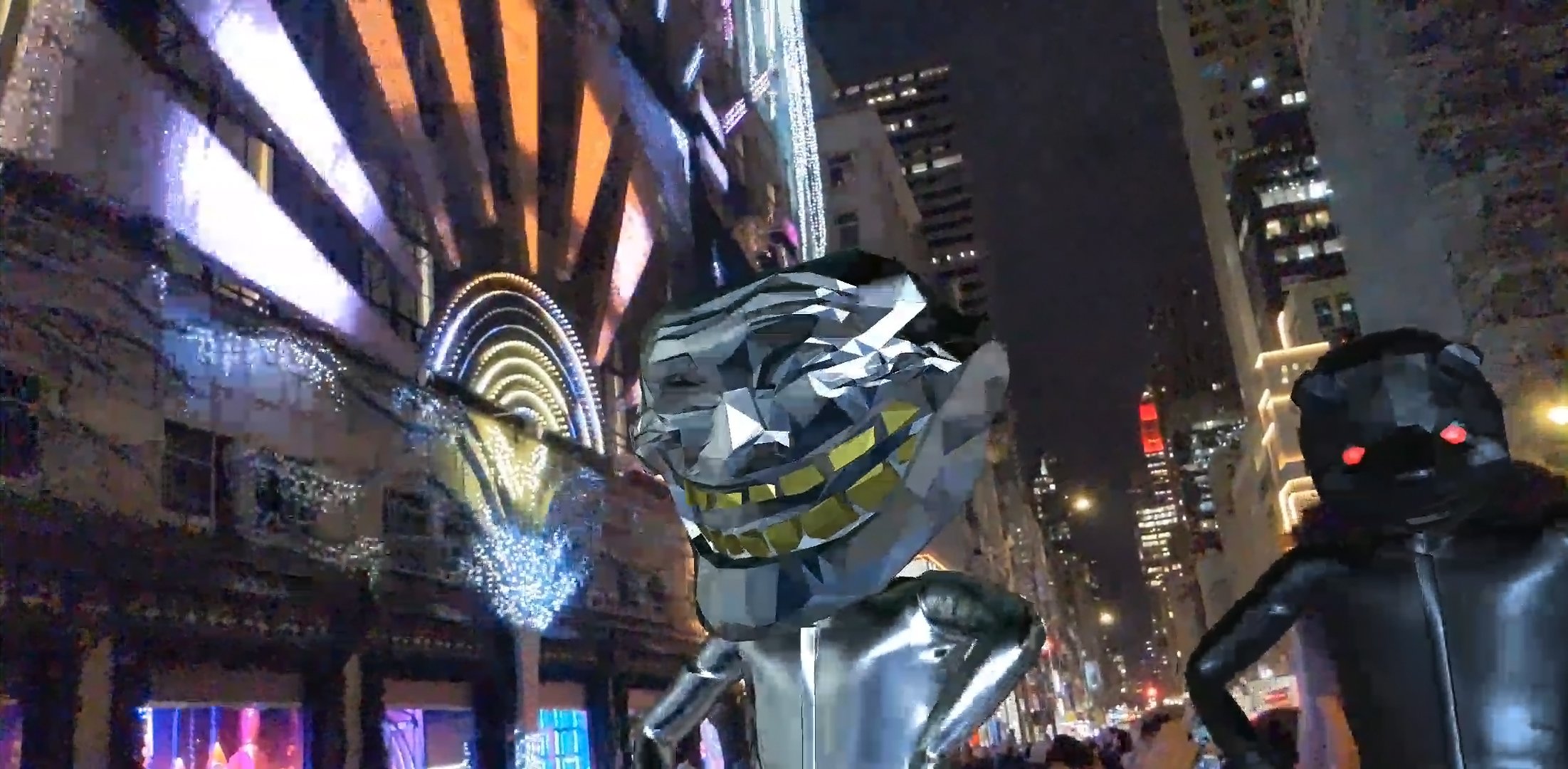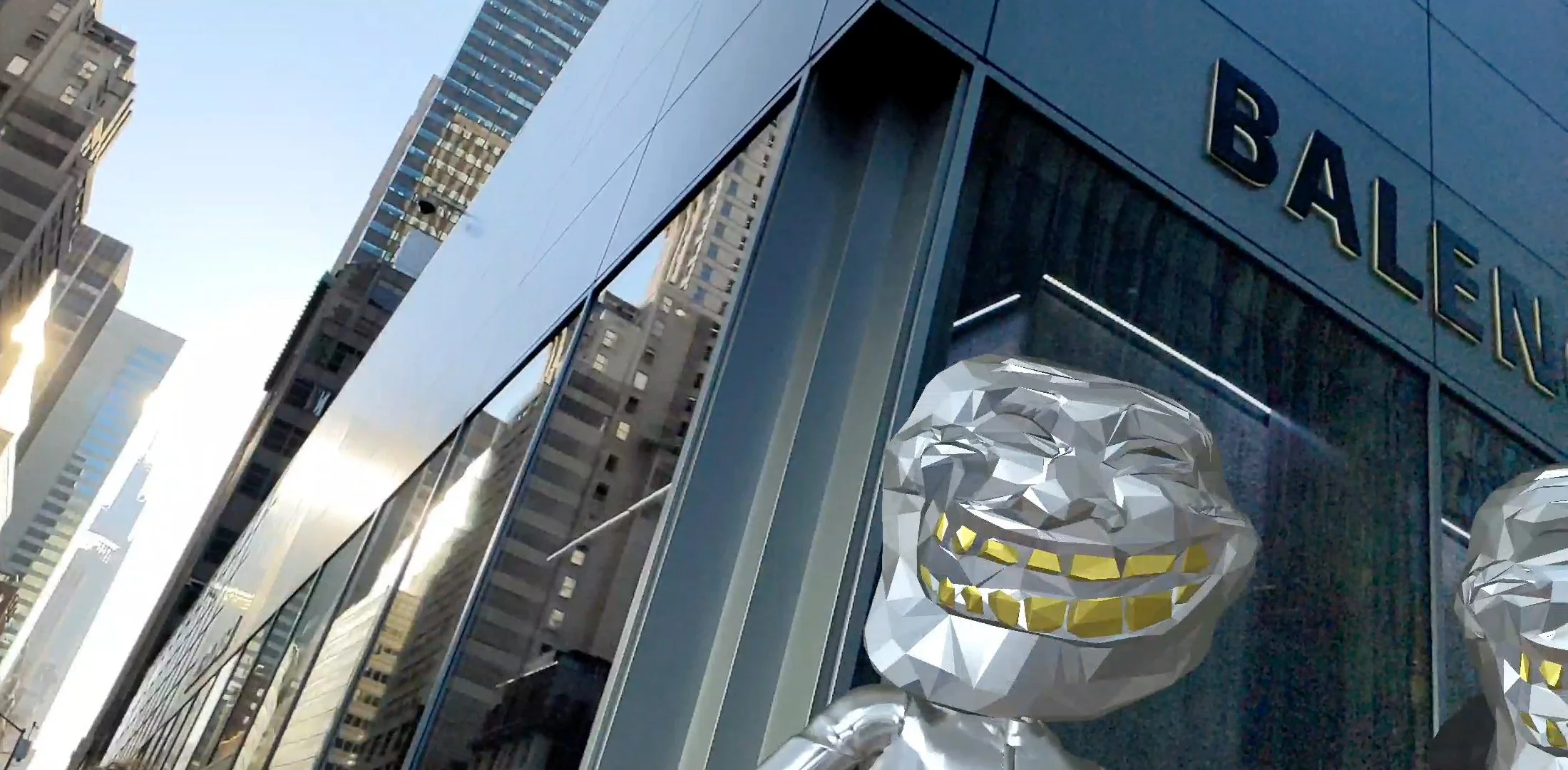 Glitched and Balenciaga Bear dancing together on Filth Avenue.