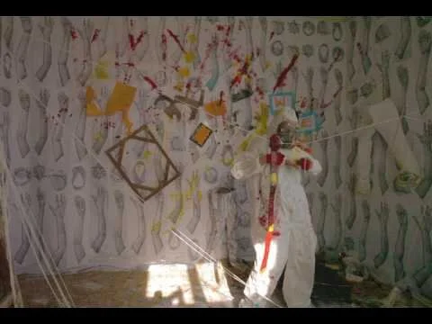 The Ingredients of a Subway Car room-size installation and performance was created over four hours without a script and working spontaneously with various objects: