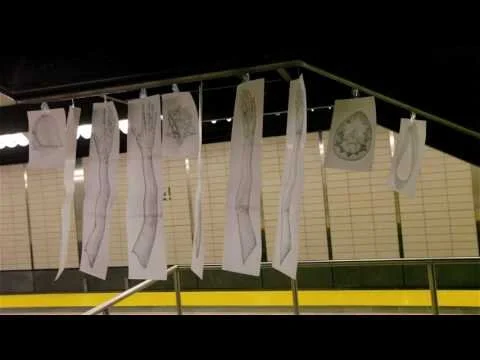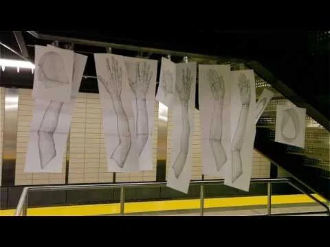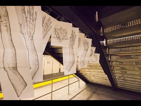 Ingredients of a Subway Car is a series of installations, performance and 3d simulations inspired by the New York City subway and based on a drawing of the same name. The New York City subway is a place where many different hands hang from the handles, characters perform various routines, dissimilar objects occupy the same space, and many passenger storylines converge for a moment in a subway car.