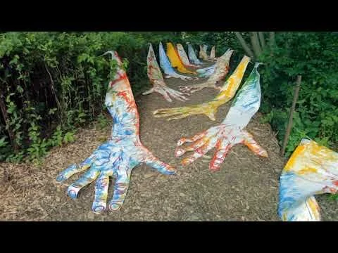 Strawberry Fields Installations were inspired by Strawberry Fields in Central Park. The artist created installations for three days in a row, hanging the hands in the morning and taking them down in the evening. It continued in tune with the music that surrounded the artist in Central Park. There was music everywhere and the sounds of it inspired the artist to hang the hands over and over again and just let them flutter, sometimes.